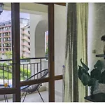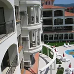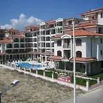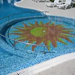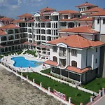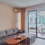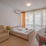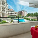 Situat la 20 de minute de mers pe jos de Plaja Chaika, Chateau Del Mar Holiday Apartments Sunny Beach are un balcon și o zonă de luat masa cu vedere spre piscină. Oaspeții pot închiria biciclete pentru a explora împrejurimile.